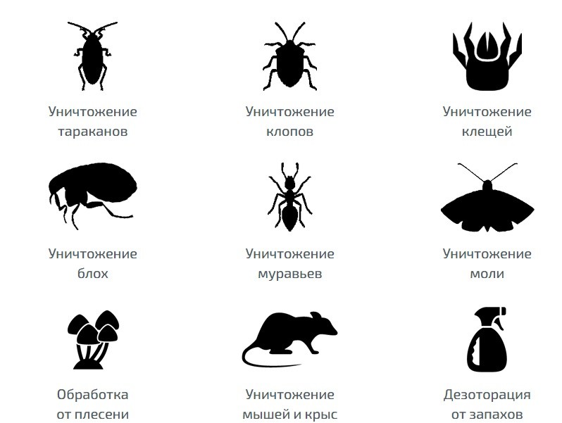 Наша служба выполнит весь спектр работ по дезинсекции (уничтожение насекомых: клопов, тараканов, блох и др.), дератизации (уничтожение грызунов: крыс, мышей), дезинфекция (уничтожение грибка и плесени, вирусов, микробов, бактерий) и дезодорация (устранение запахов).